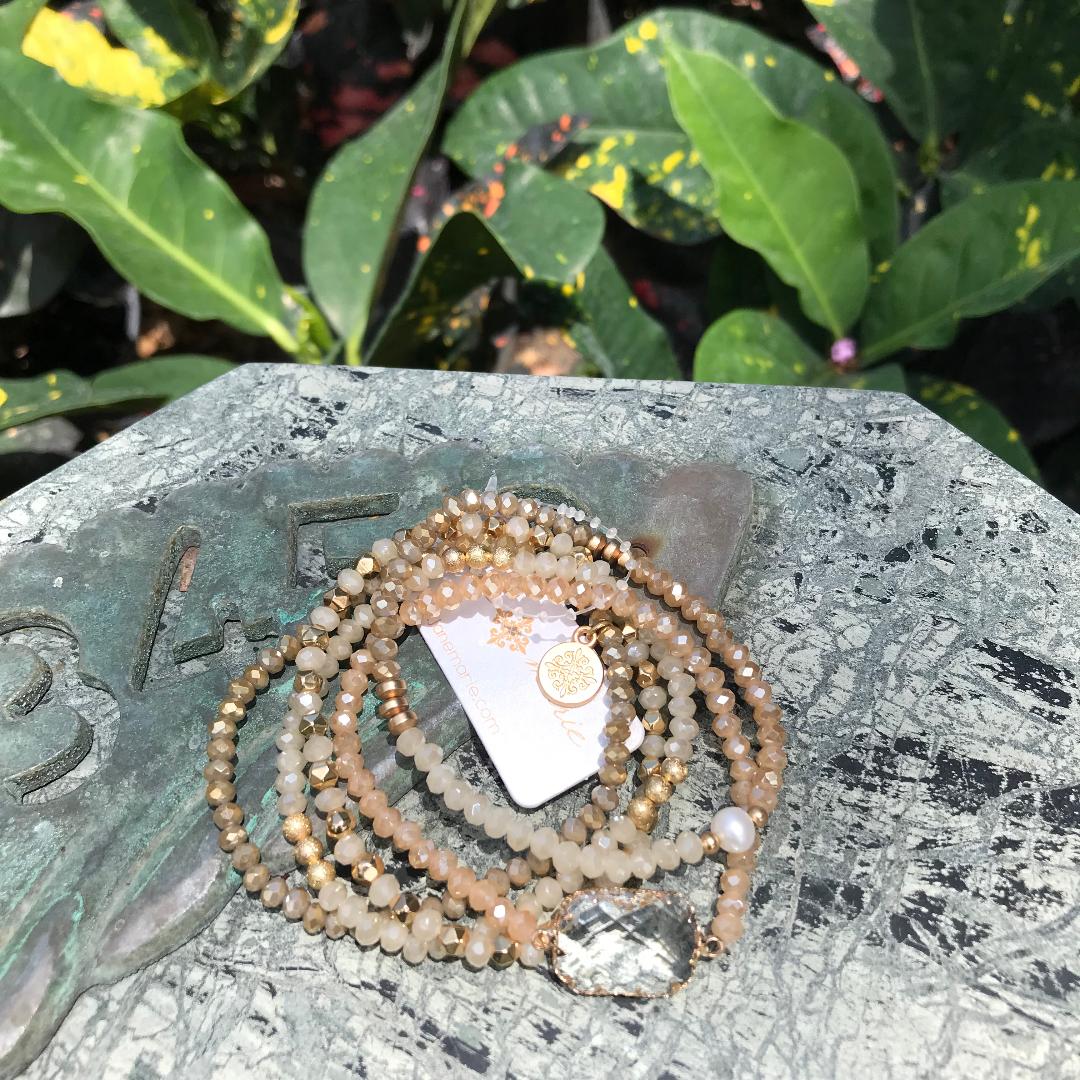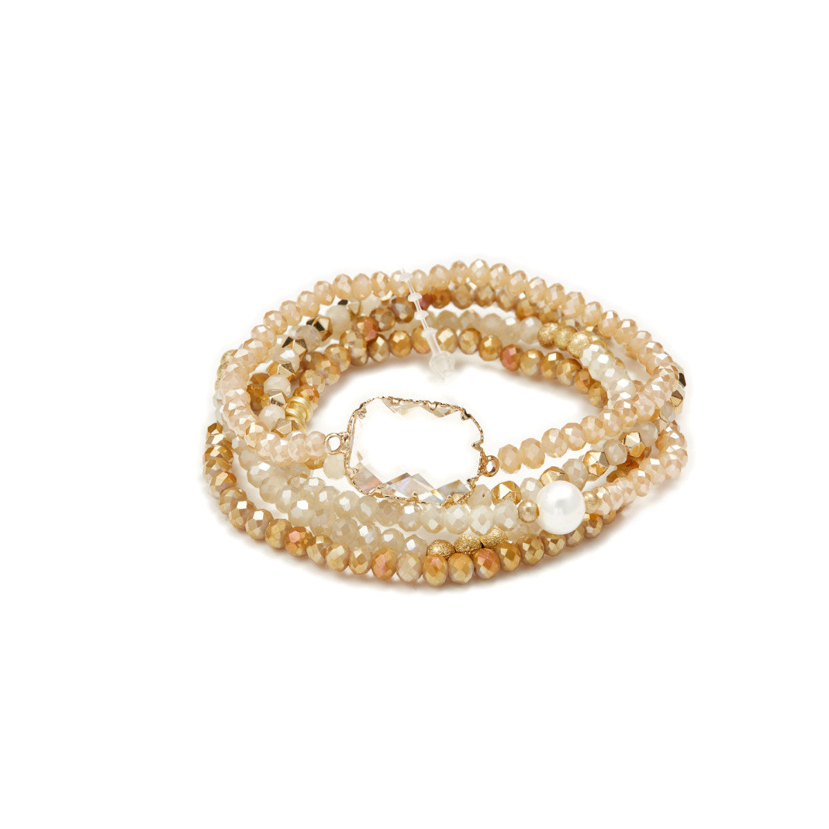 Champagne and Blush Beads with Clear Stone Charm Bracelet