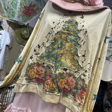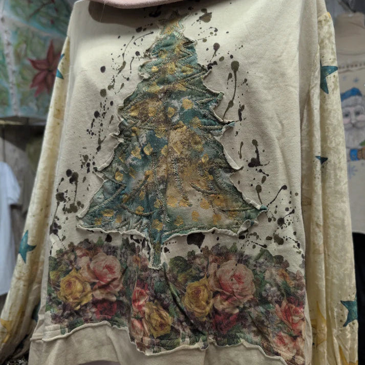 Celebrate the season in cozy, handcrafted style with our Rosie Christmas Shirt from A Rare Bird. This one-size piece (fits sizes 6-18) features a stunning, artistic Christmas tree design that’s both festive and unique. The standout velvet sleeves are adorned with delicate stars, adding a magical touch to your holiday wardrobe. Perfect for festive gatherings or cozy winter days — wear a little handmade joy this season!