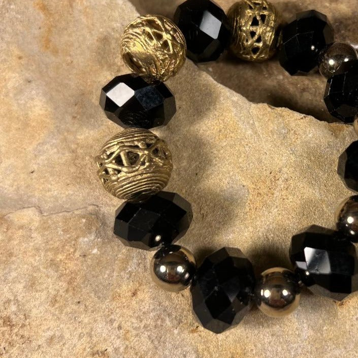 - Black, Vintage Filigree and Gold Bead Stretch Bracelet