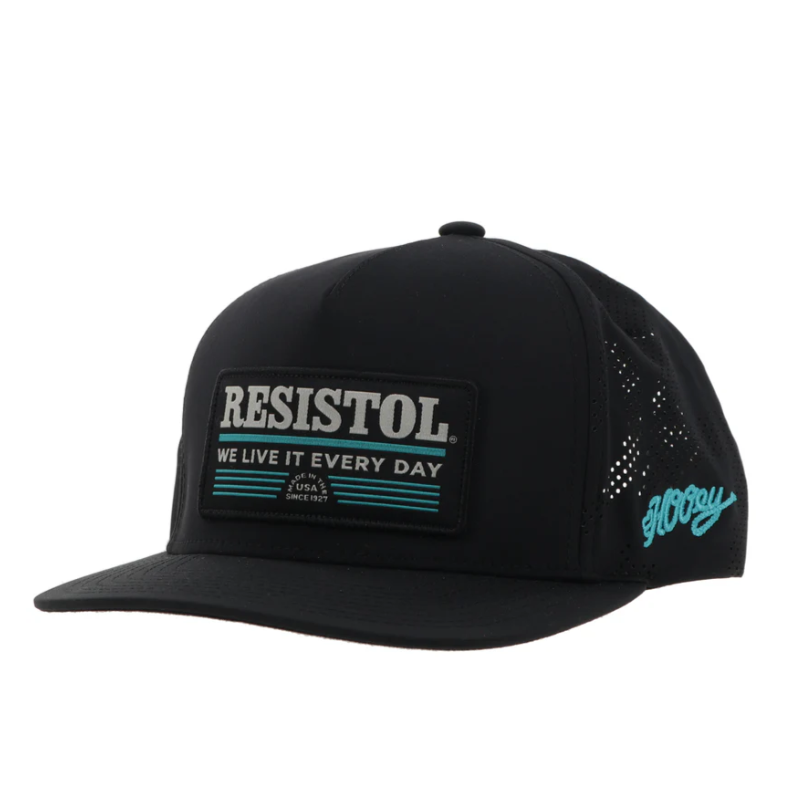 "RESISTOL" HAT BLACK W/BLUE & GREY PATCH
