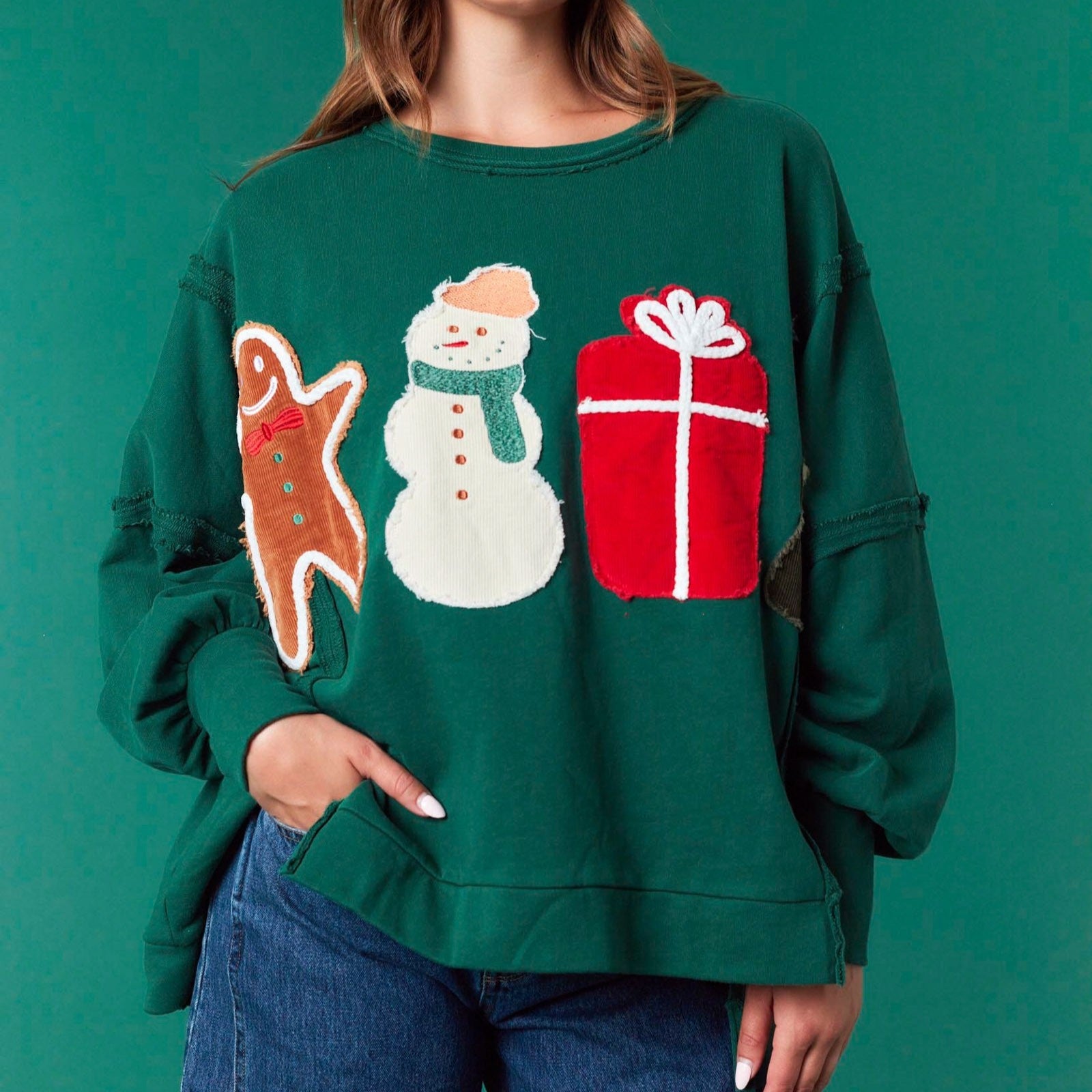 Corduroy Christmas Hunter Green High-low Hem French Terry Sweatshirt