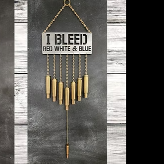 I Bleed Red, White, and Blue Bullet Windchime .50 BMG