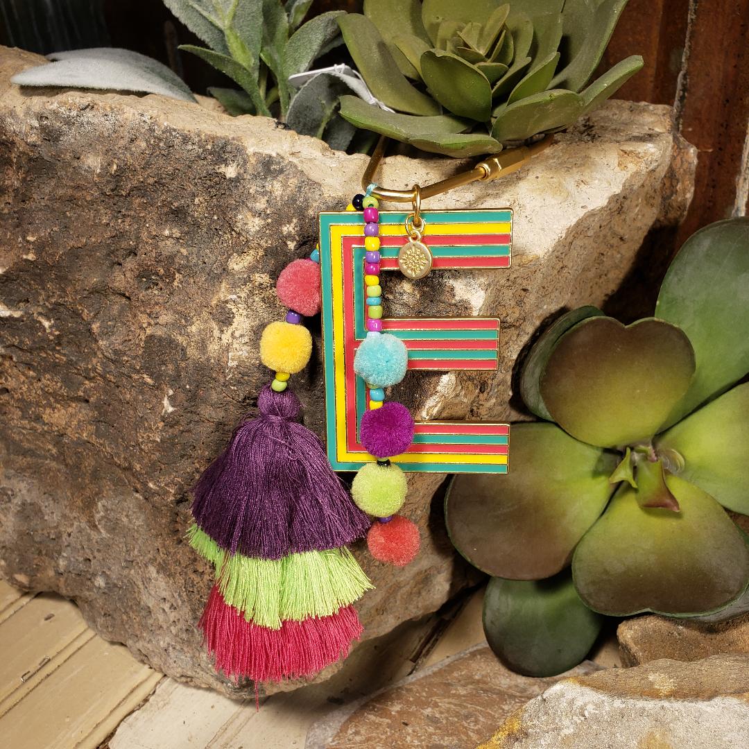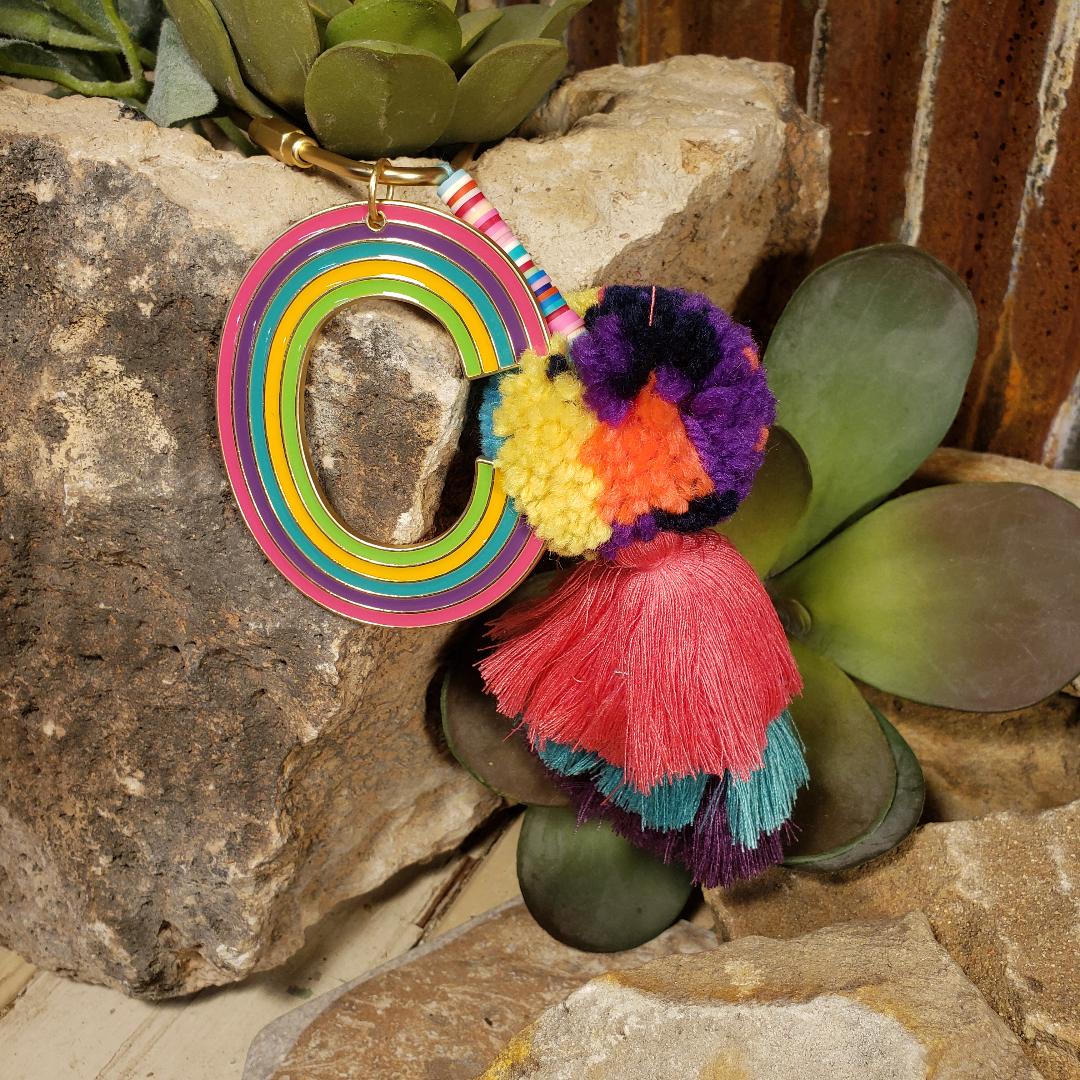 Enamel Letter purse charms with multi beaded strands, poms & stacked keychain!