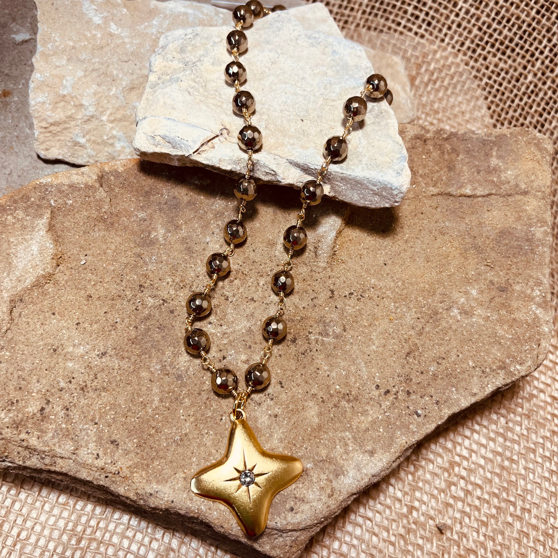Pyrite Plated Ball Link and Swarovski Crystal Star Pendant Necklace