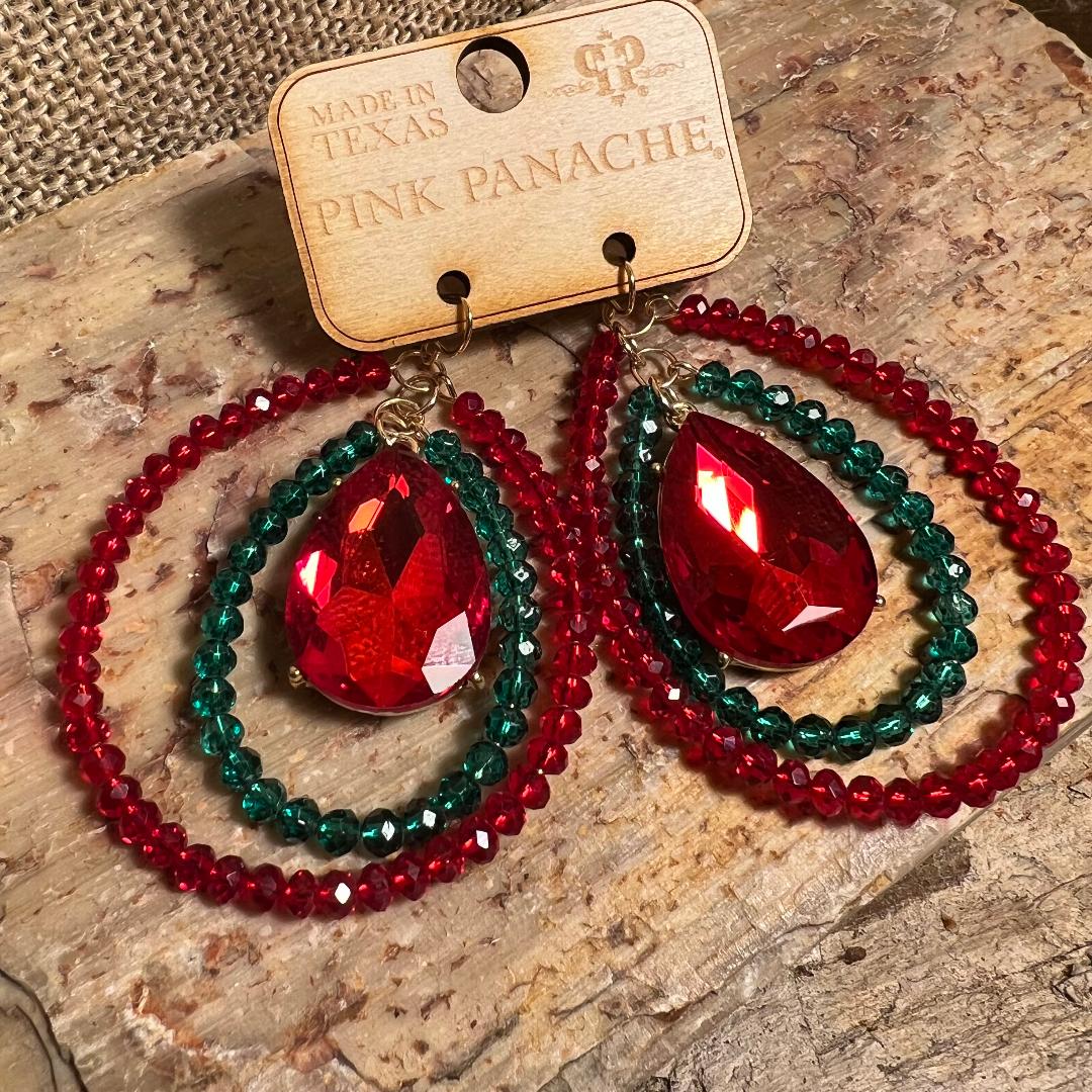Gorgeous Red and Green Teardrop Beaded Earrings