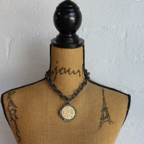 This necklace features 17” of our edgy and bold Lourdes chain, our exclusive Austrian Crystal St. Remy bezel and Canard medallion. Absolutely beautiful all by itself or layered with our other designs.