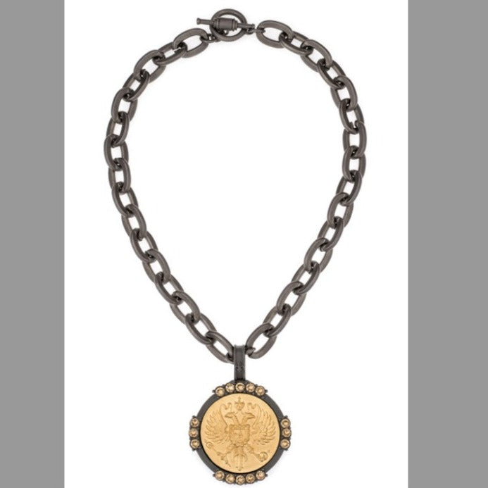 Graphite Lourdes Chain with Canard Medallion and Austrian Crystal Necklace