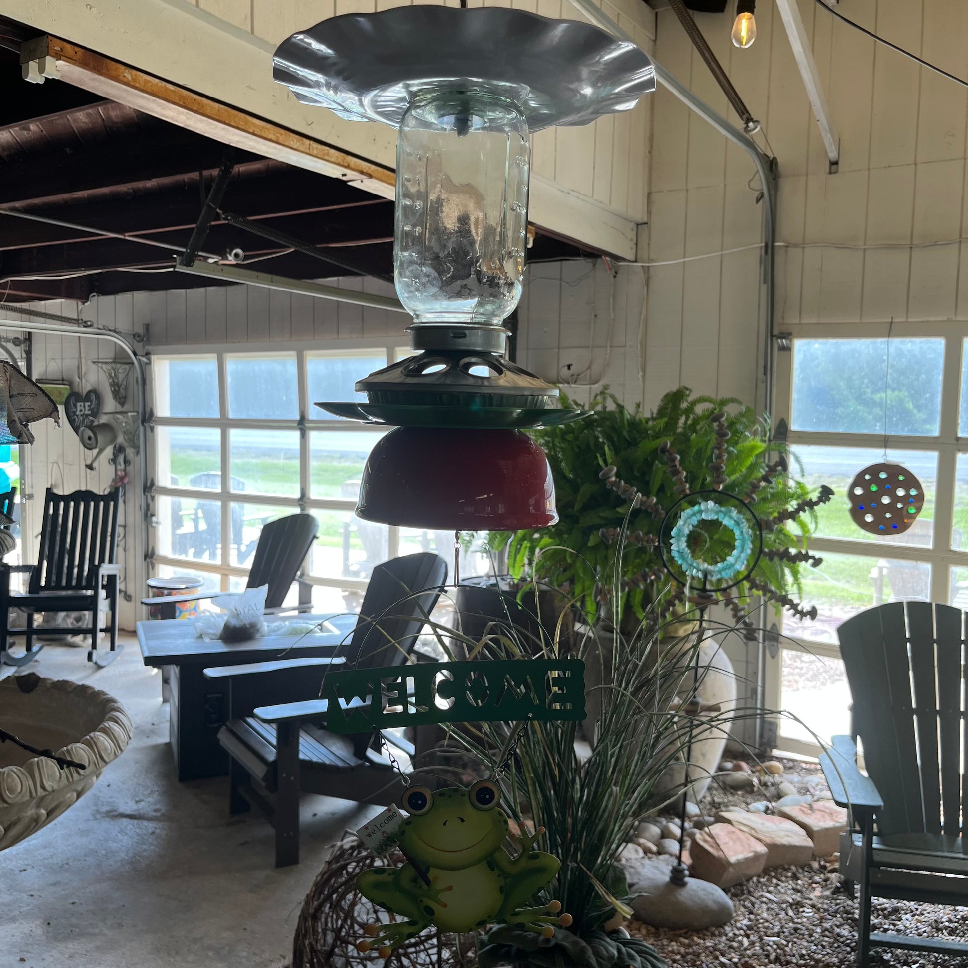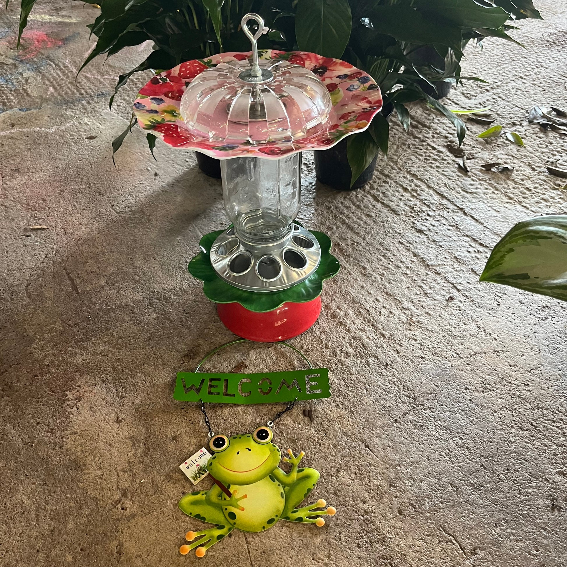 Hanging Bird Feeder Welcome Frog