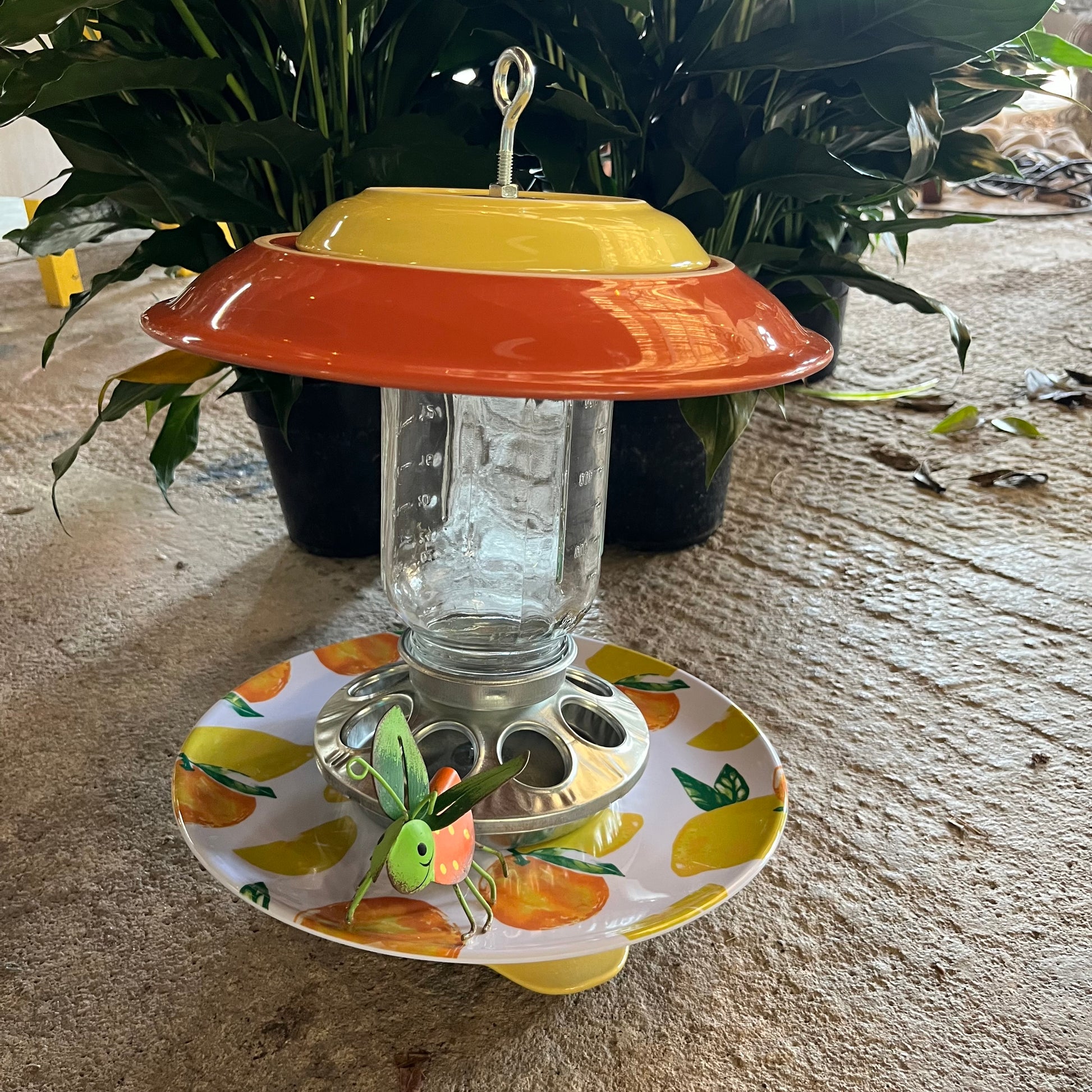 Welcome your hungry winged friends with lots of birdseed in this grandiose bird feeder. Item is a custom handmade piece of art made right here in Texas. Hook included for easy hanging on patio, porch, or tree branch.