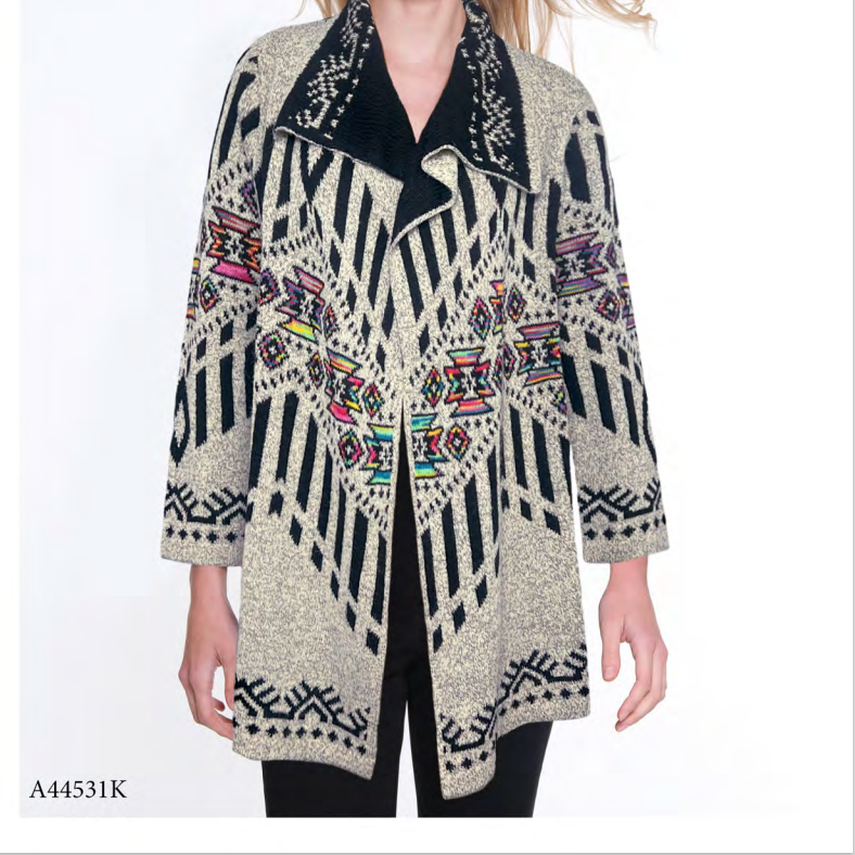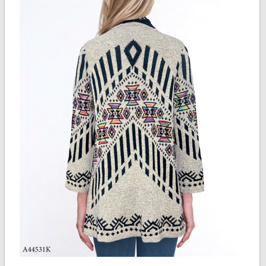 Go anywhere dressed up in this Ali Miles Jacquard Sweater Knit Cardigan