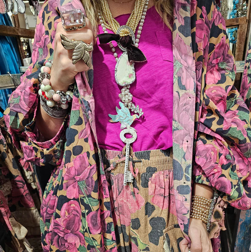 One size and so gorgeous! This is an original Rare Bird print. It pairs with so many items but especially the Rose Leopard pants.