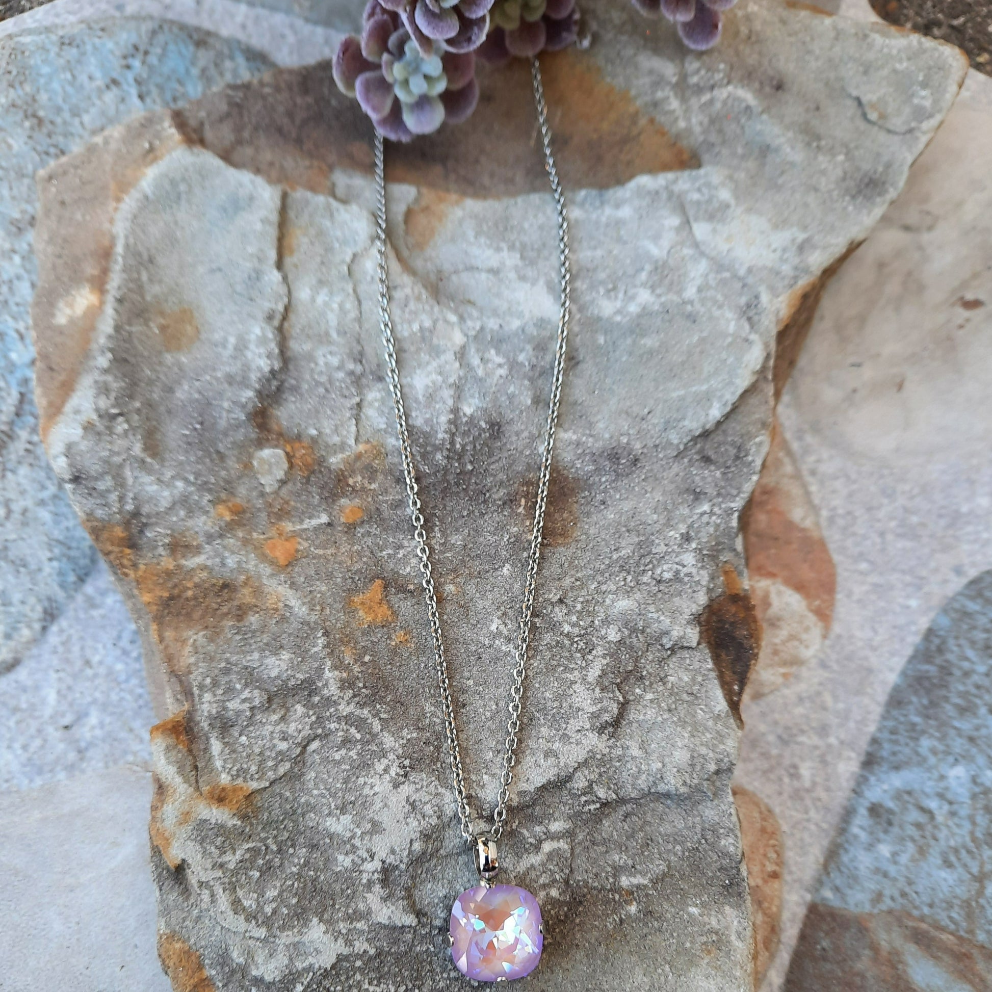 Cushion Cut Pendant Necklace in Sun-Kissed "Lavender"