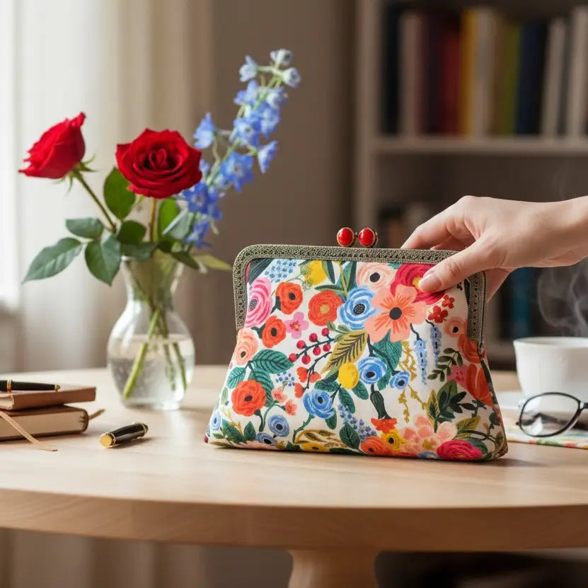 The Kiki & Syds Everyday Clutch offers a one‑of‑a‑kind, handcrafted design your customers will love. Made from premium linen‑cotton canvas and finished with our signature kiss‑lock frame, it blends artistry with everyday function. Fully lined in coordinating fabric, it measures 8" W x 7.5" H with a 1.5" gusset—compact yet spacious enough for daily essentials.