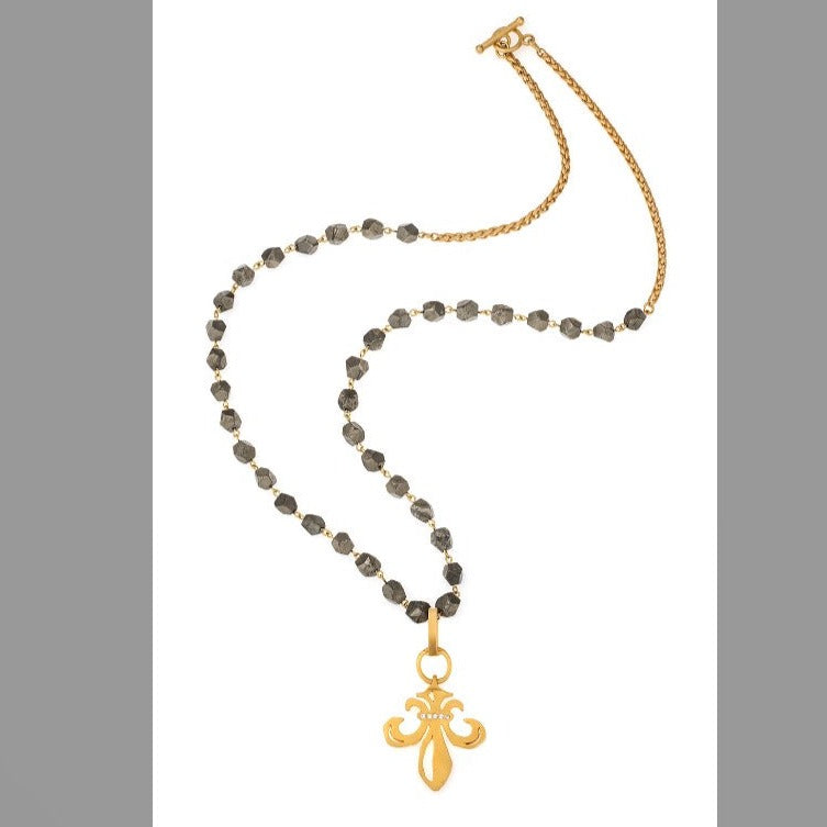 Pyrite Cheval Chain with Grande Fleur Pendant Necklace