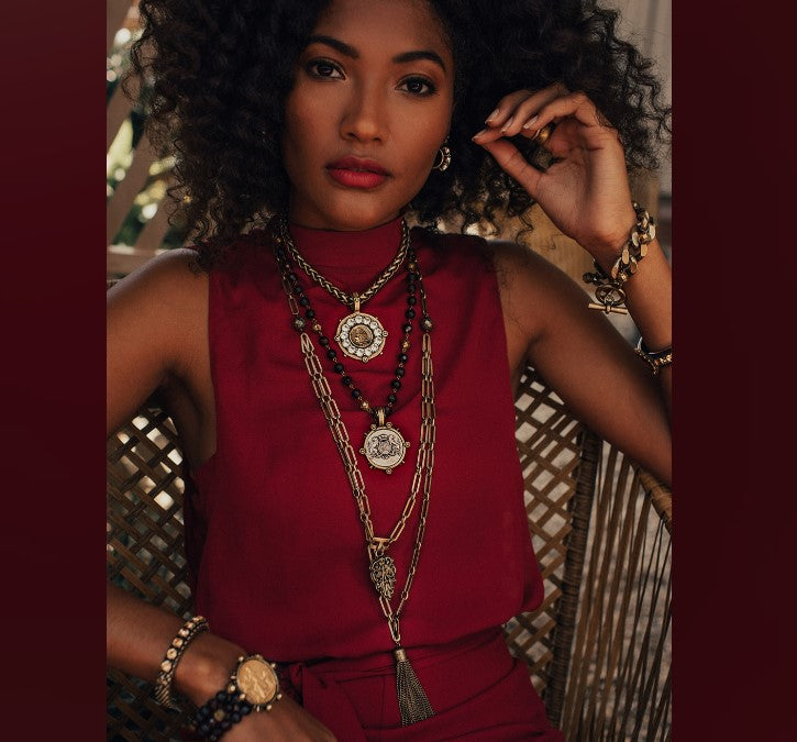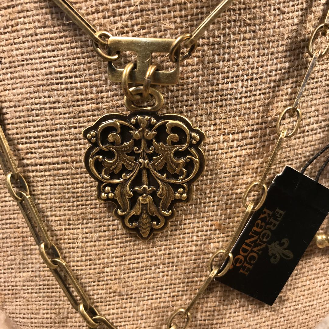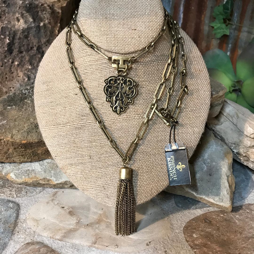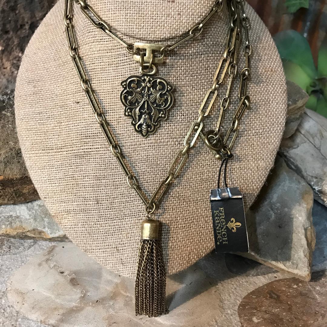 This necklace features two 30-34” strands of our Versailles chain, Pyrite and H Chain accents, Filigrane pendant and small tassel. Absolutely beautiful all by itself or layered with our other designs.