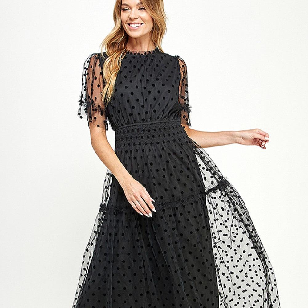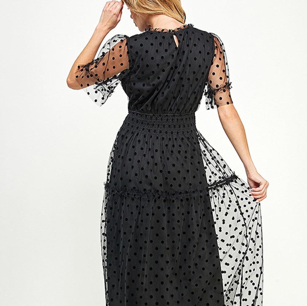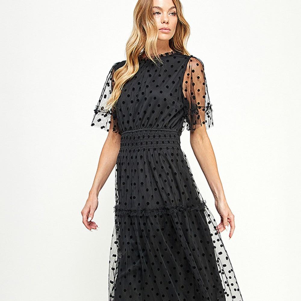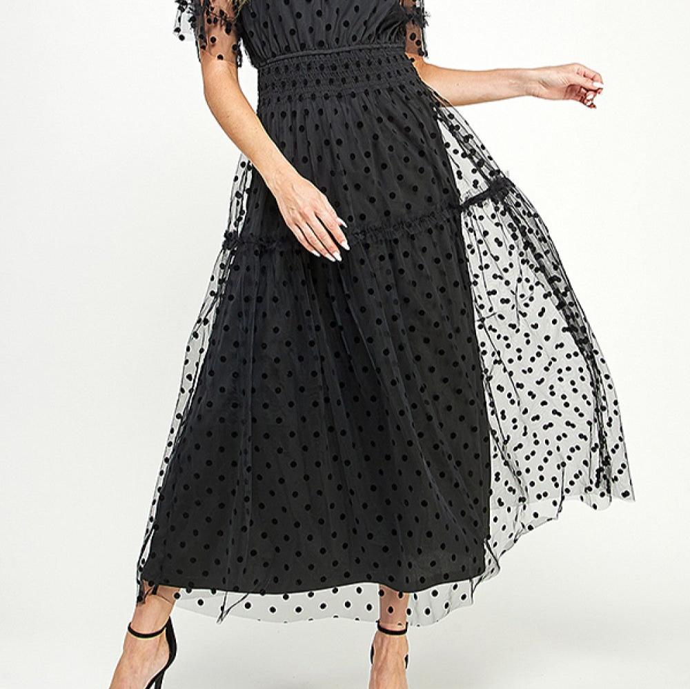 Polka Dot Mesh Midi Dress