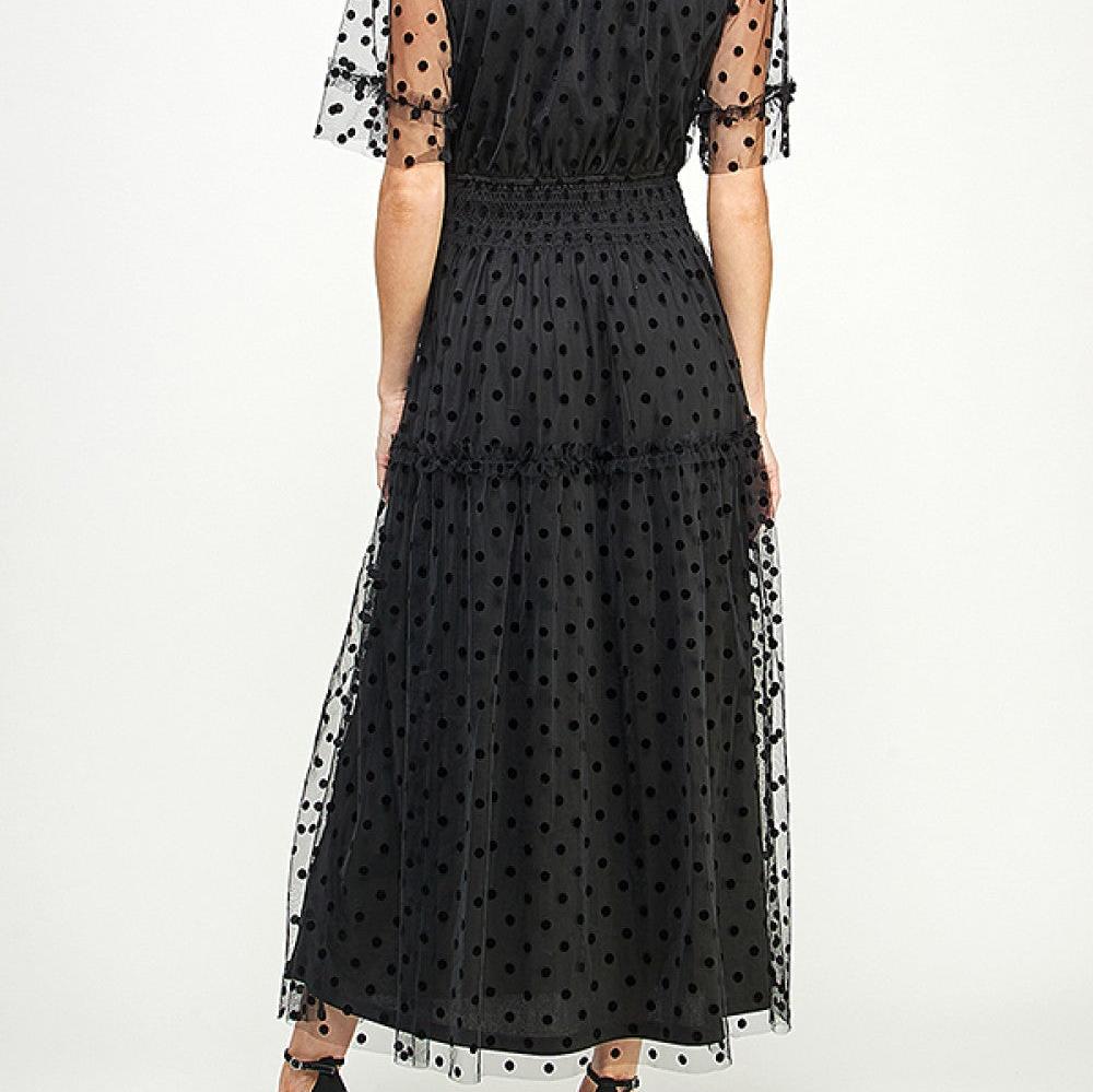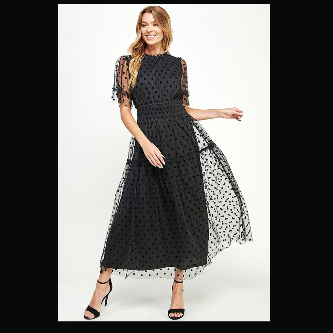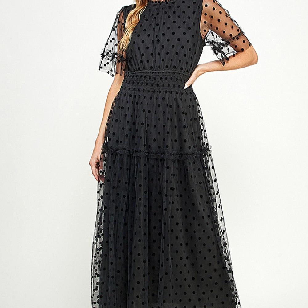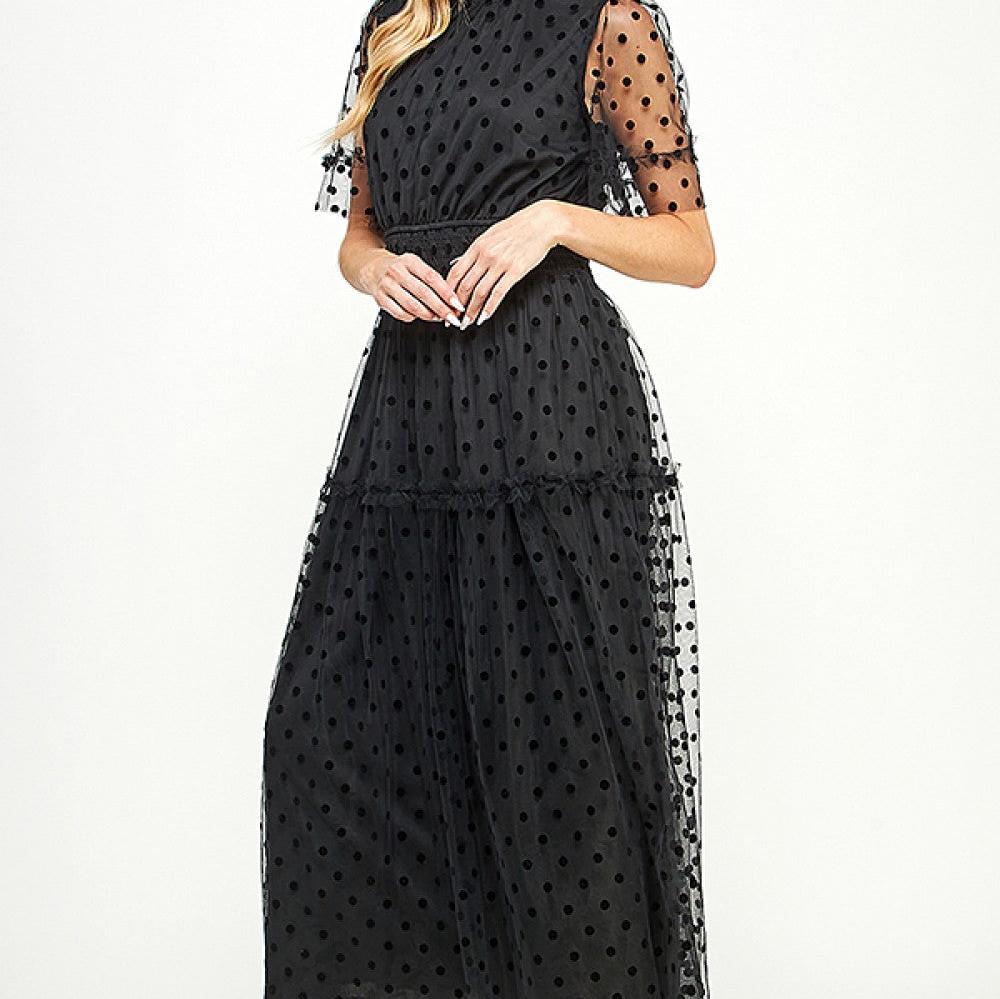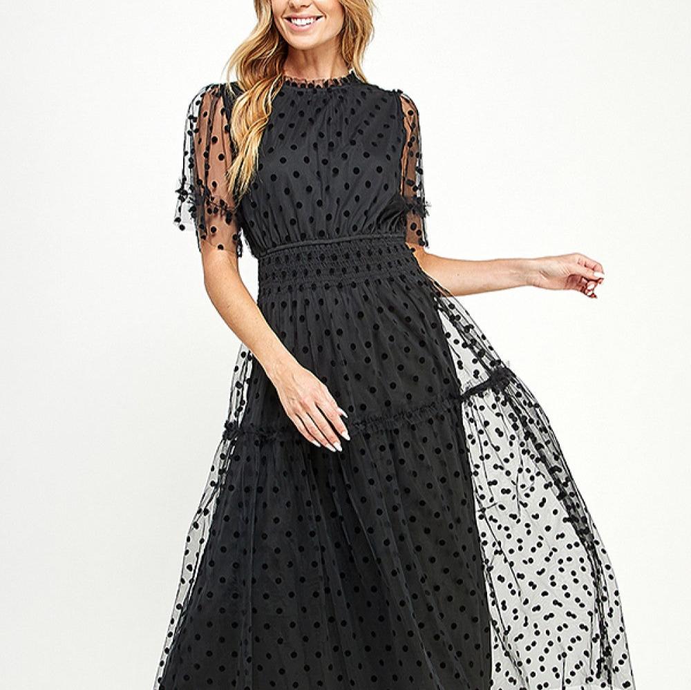 Polka Dot Mesh Midi Dress