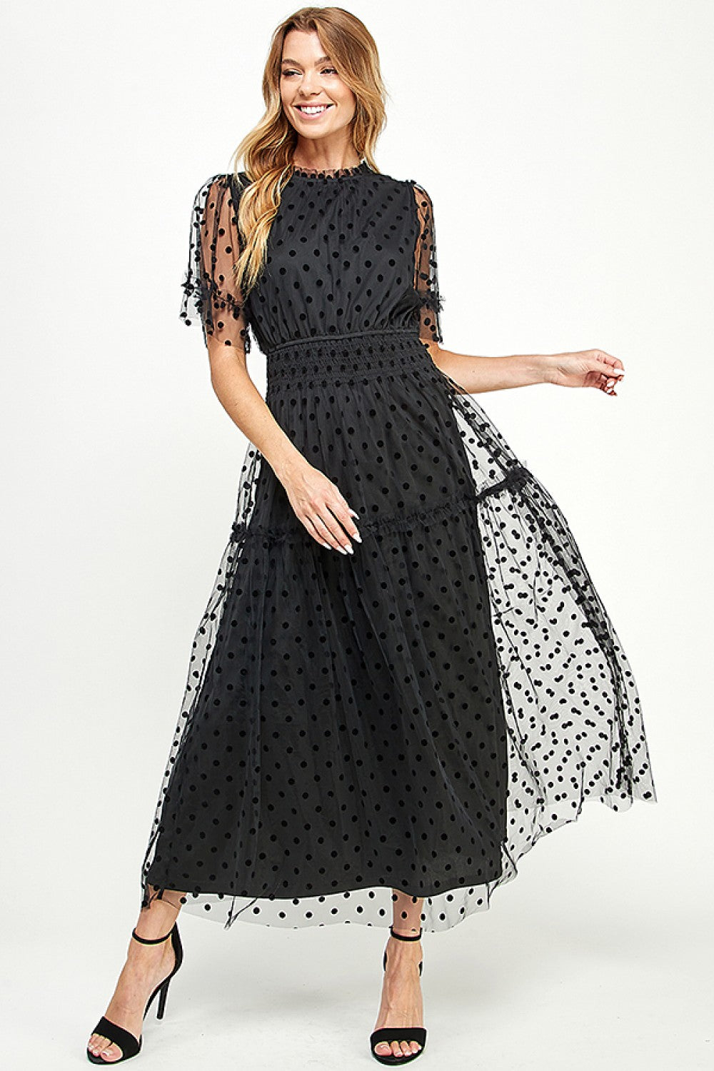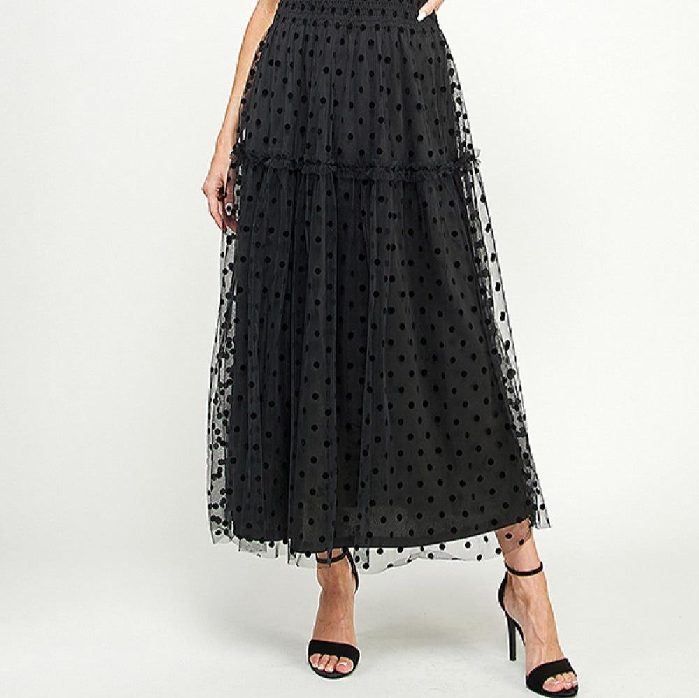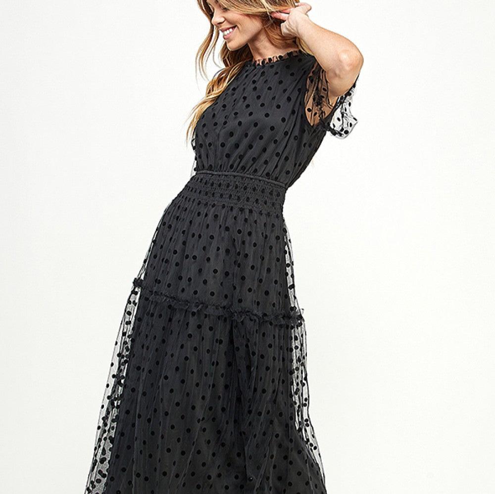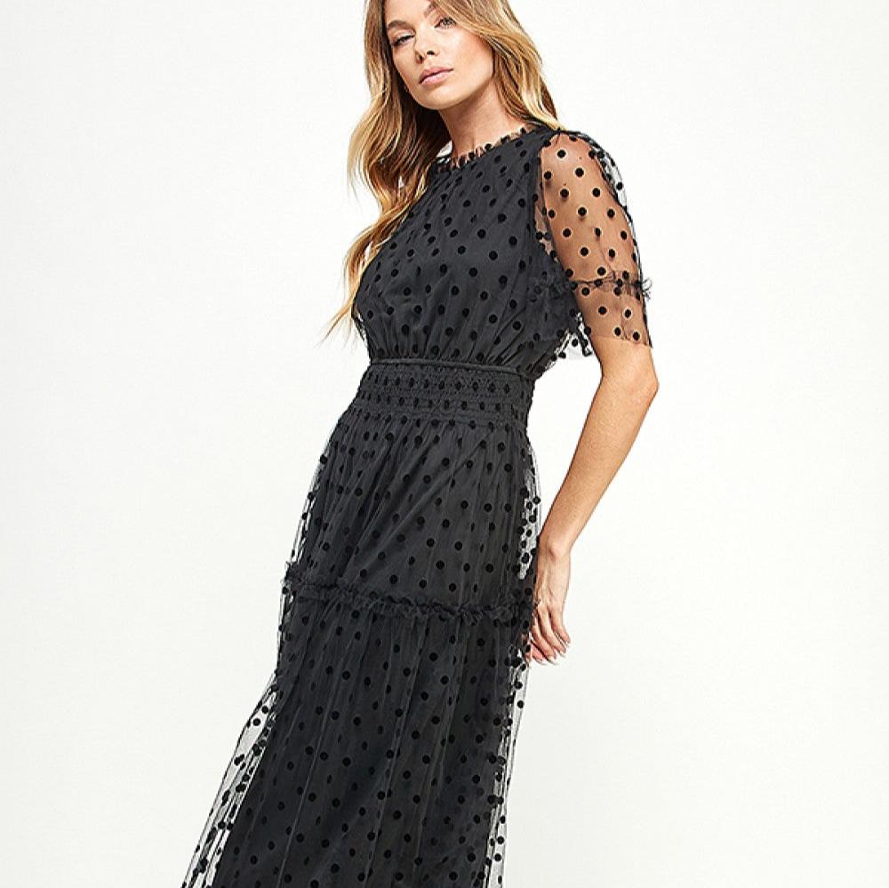 Polka Dot Mesh Midi Dress