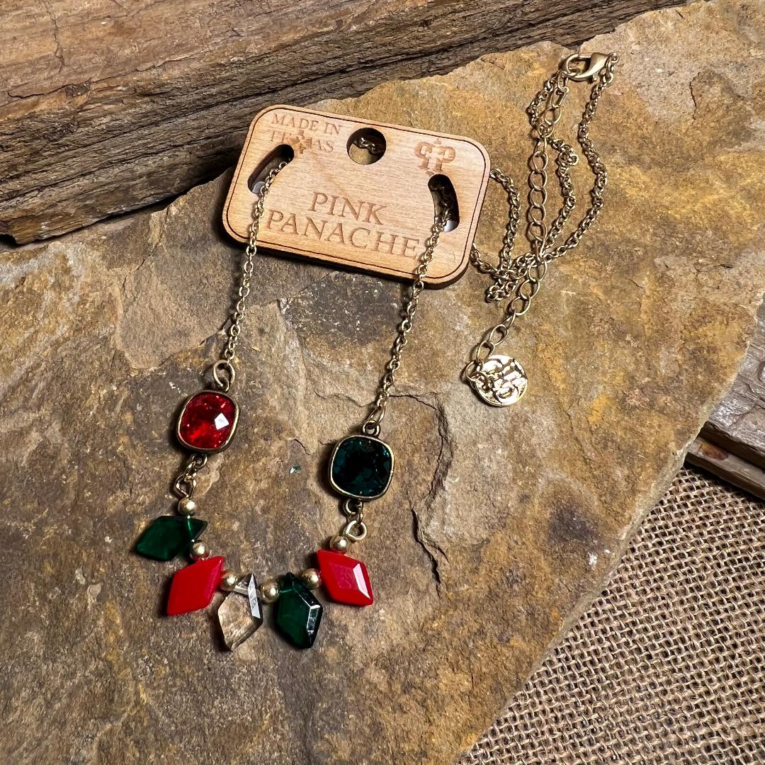 Red, Green & Gold Diamond Bead Necklace