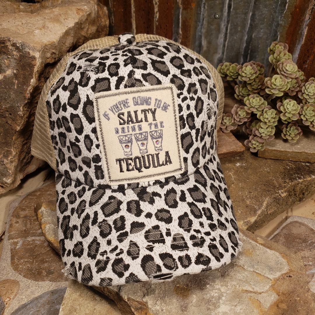 Salty & Tequilla Bling Embroidered Leopard Cap