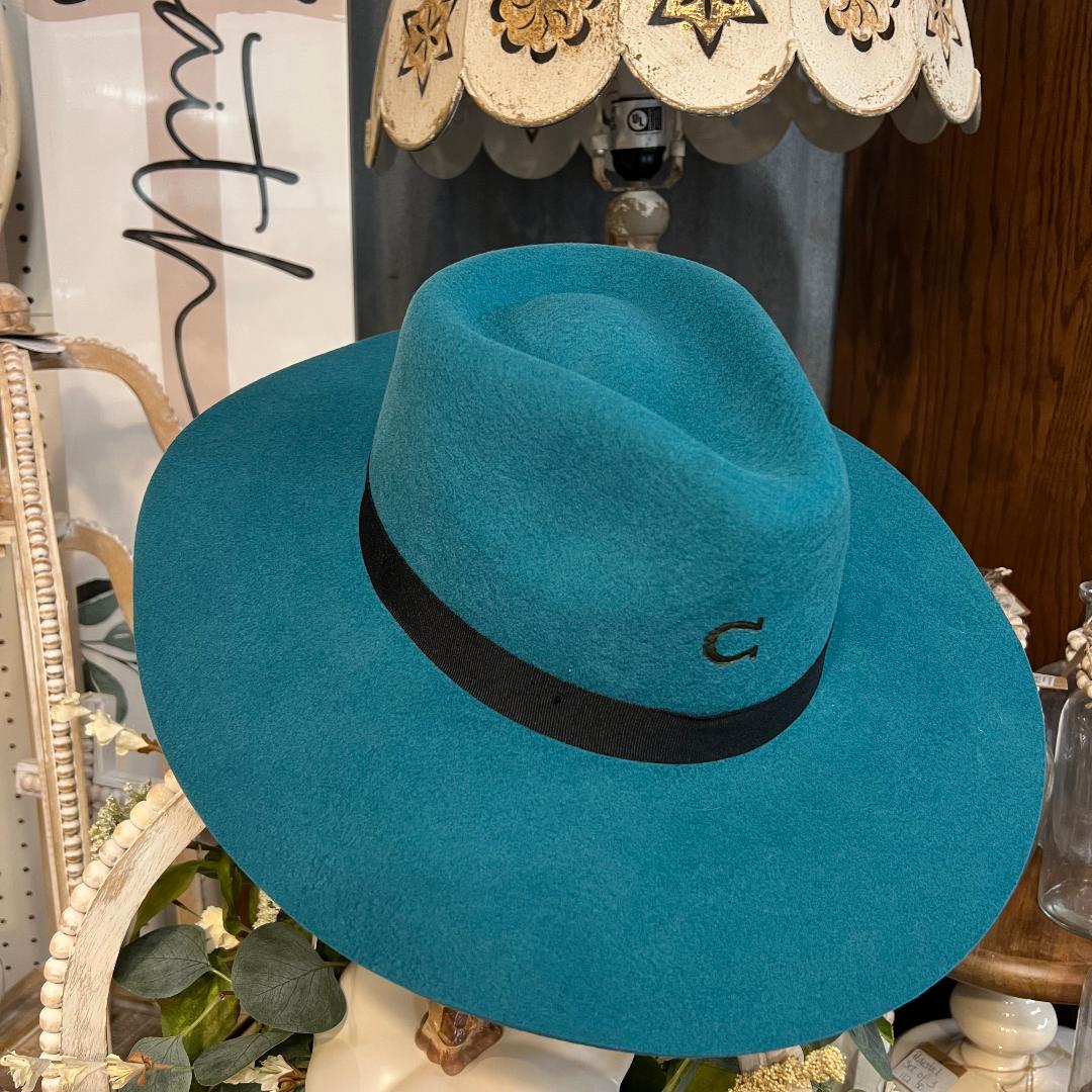 A Must have ... this "Highway" hat features a felt construction with pinch front crown, bow band and "Charlie 1 Horse" trademark logo.
