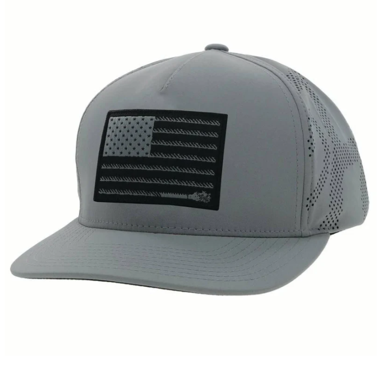 "LIBERTY ROPER" GREY HAT W/BLACK/WHITE RECTANGLE PATCH
