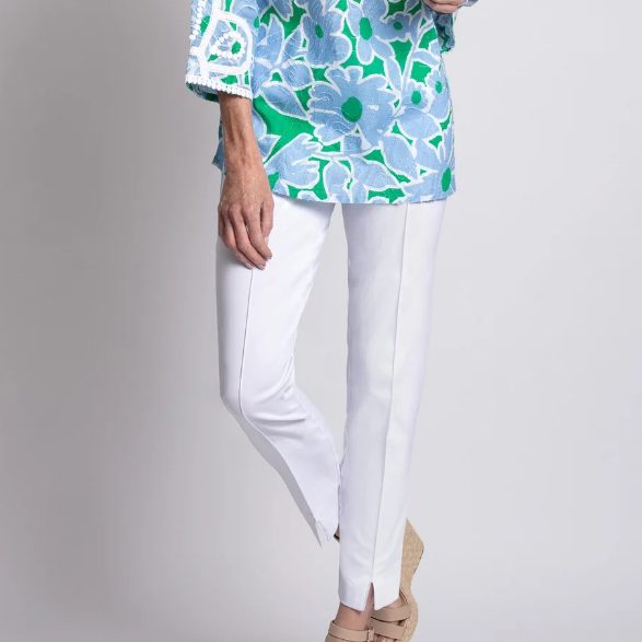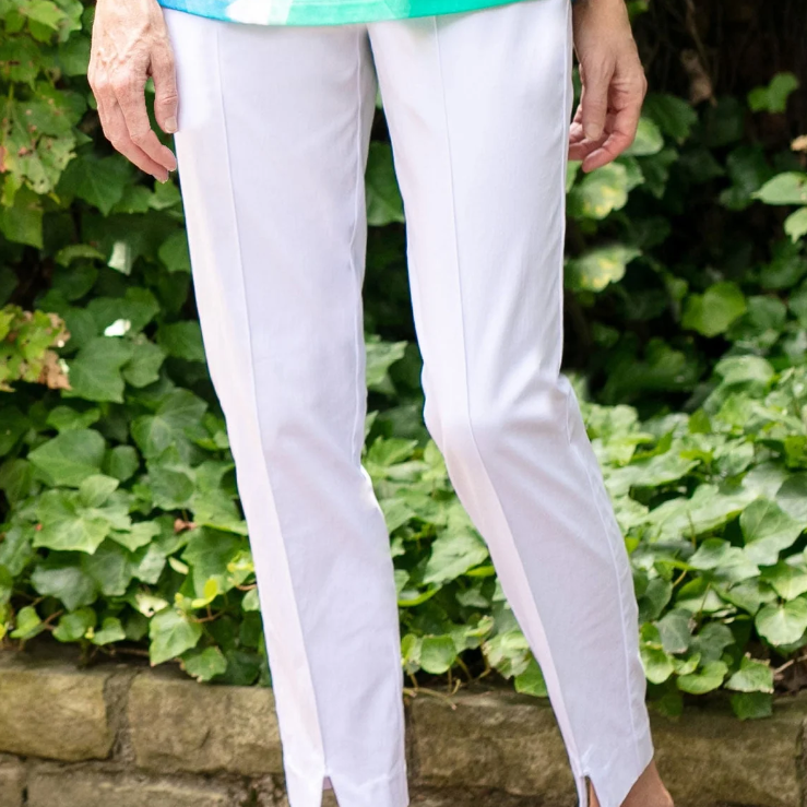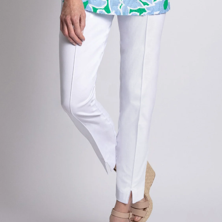 These sleek and chic pull-on white ankle pants feature a tummy control panel and pair perfectly with a professional polished look or for an everyday casual outfit. Made with rayon, nylon, and spandex material for an ultimate comfortable fit.