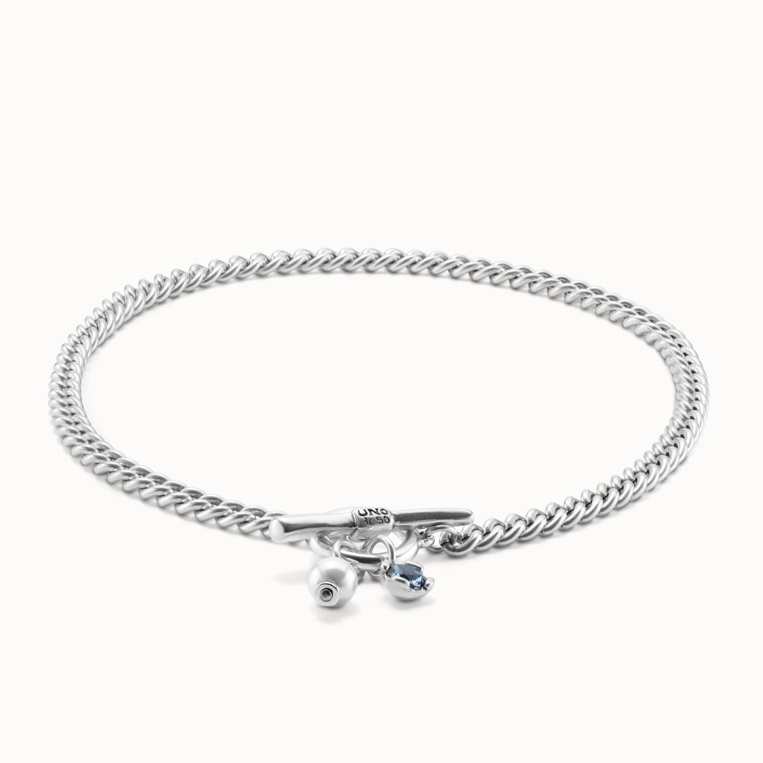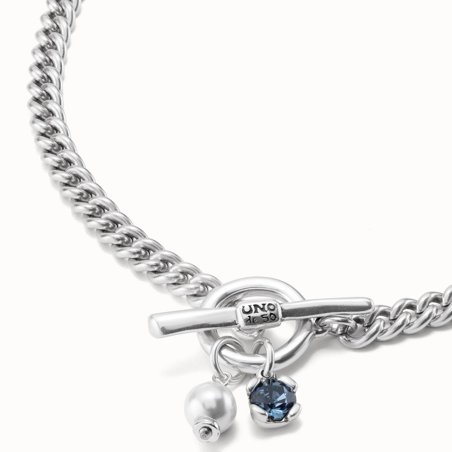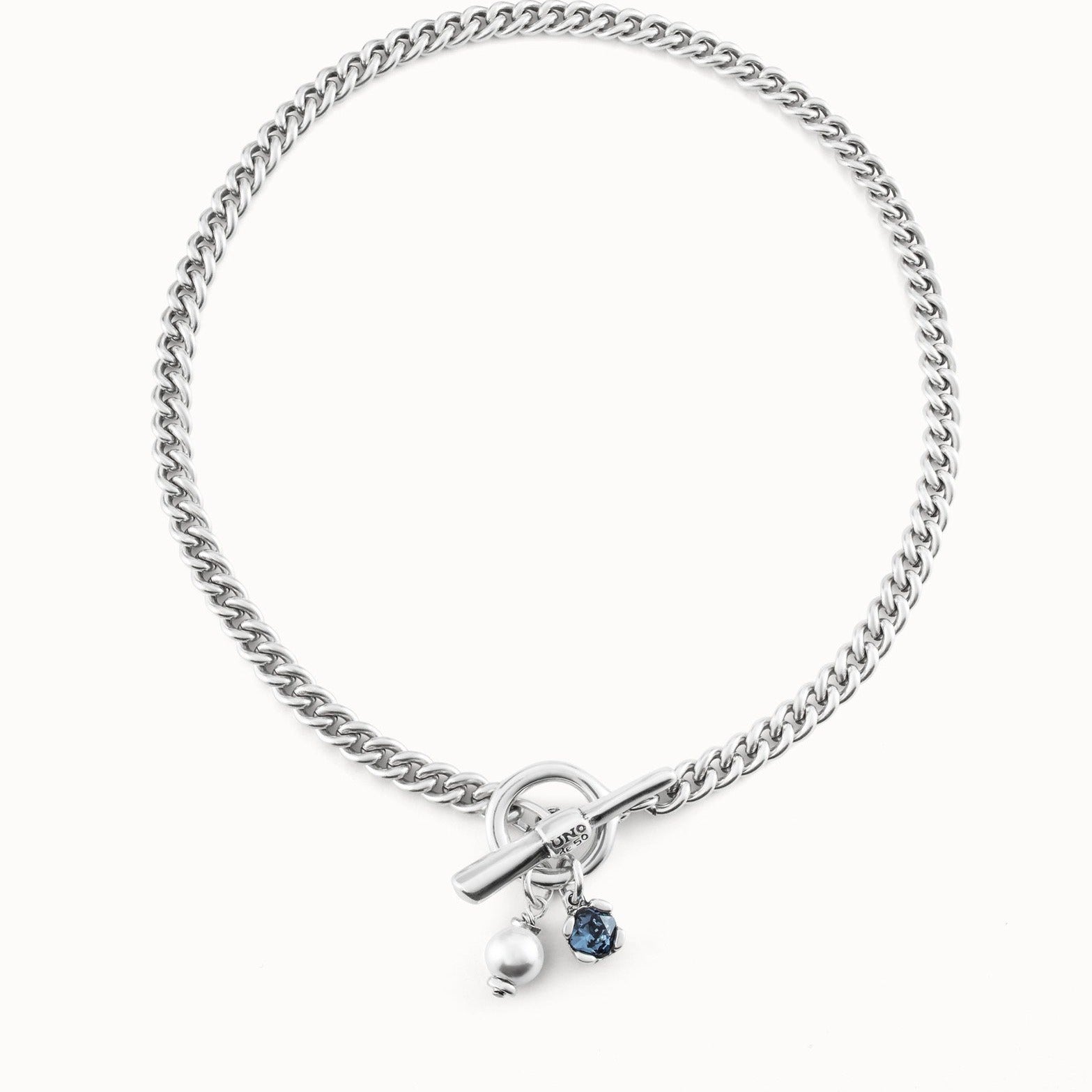 The Charismatic collection represents the ability to attract, captivate and influence everything around us, something that can only be achieved in a natural way. This is manifested in this chain necklace with two charms composed of a pearl and a blue faceted crystal with an original ring and bar clasp. A true fusion of art and jewel in a single piece that makes you dream. This jewel is Made in Spain, 100% handcrafted, achieving a unique design finish.