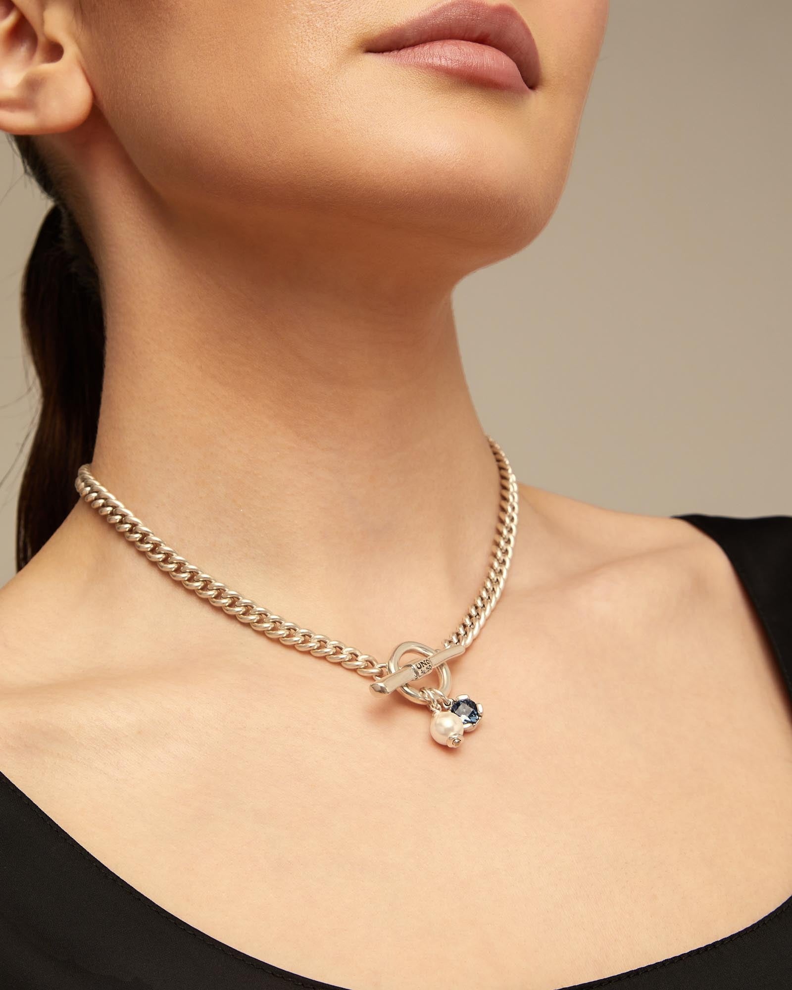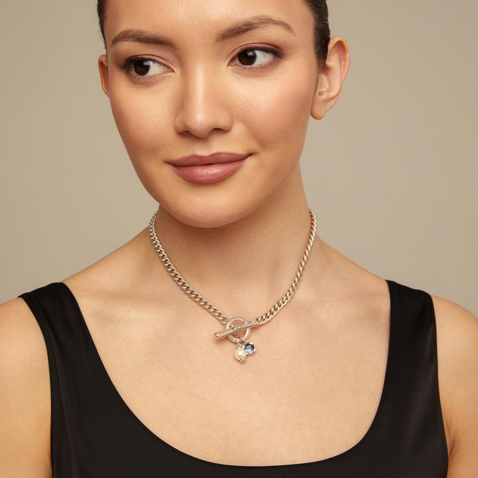 SILVER CHAIN NECKLACE WITH 2 PEARL AND FACETED CRYSTAL CHARMS CHARISMATIC