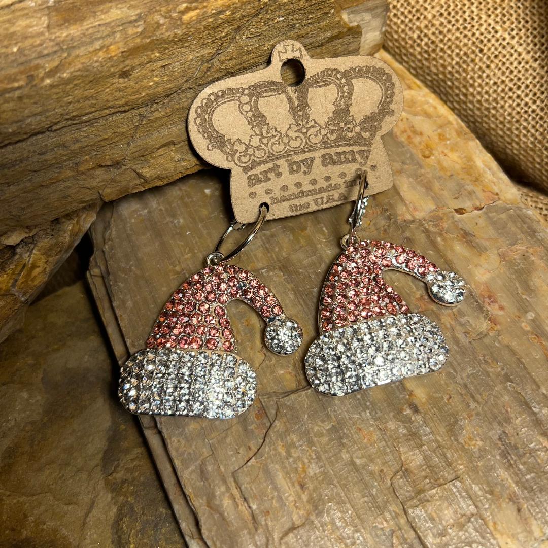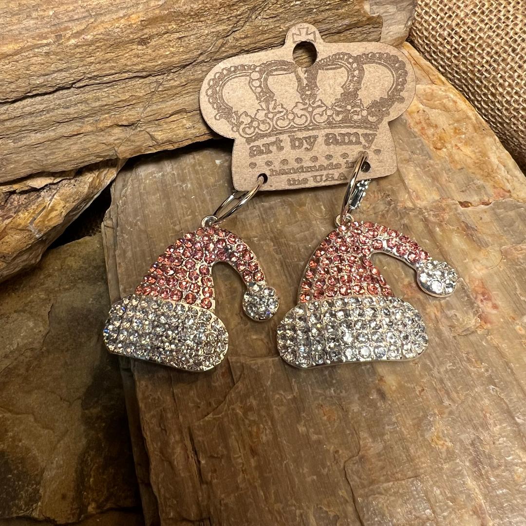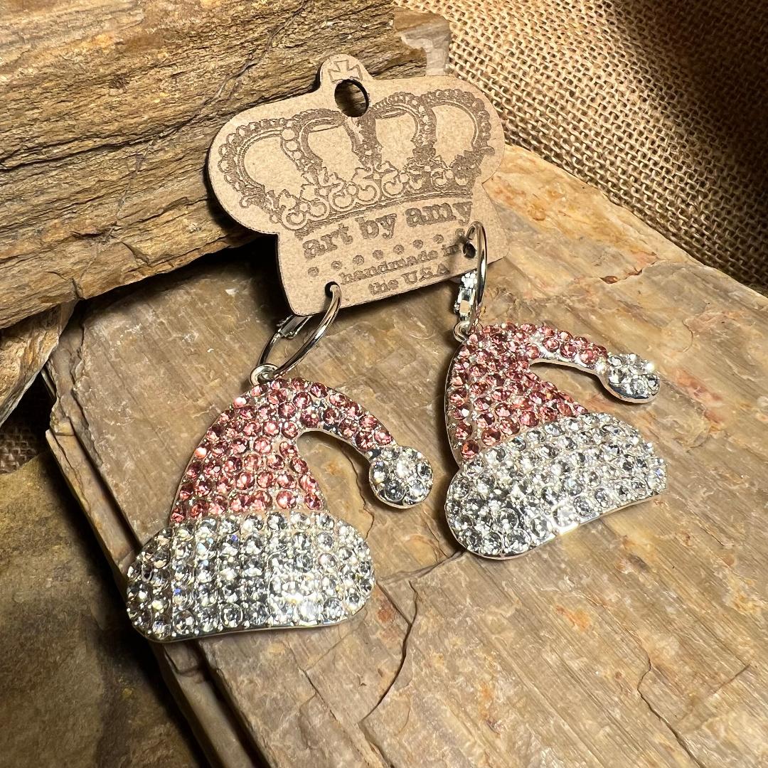 Vintage Santa Metal Pink Bling Earrings