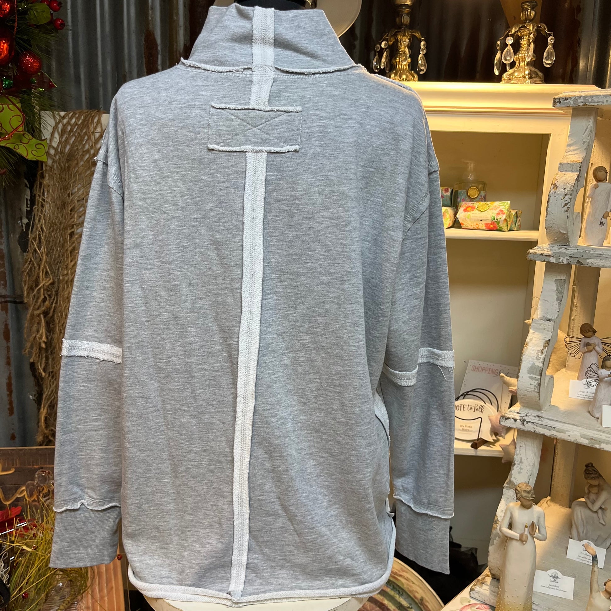 A modern twist on a classic knit, this mock neck top combines clean lines with subtle detailing. The soft cotton-poly blend ensures comfort and easy wear, while the exposed seams add an edgy, contemporary touch. Perfect for layering or wearing solo, it’s a versatile piece that elevates any wardrobe.